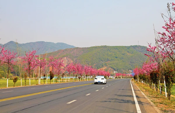 阳春三月,南华公路分局管养的南永线南华至咪依噜风情谷路段,春风习习,花团锦簇。公路两旁,上千棵樱花竞相绽放,一团团粉红色的花朵灿若云霞,妩媚娇艳,烂漫枝头,与美丽的公路共同构成了一幅迷人的早春图画。