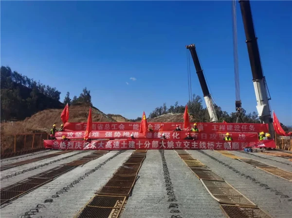 永大高速公路大姚立交主线1号桥左幅顺利贯通
