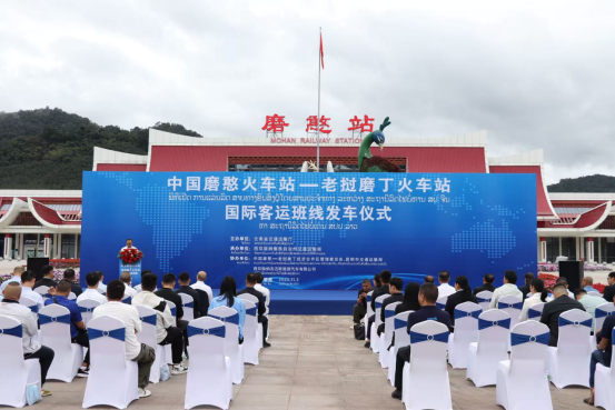 11月3日10时,在中老双方代表共同见证下,中老铁路磨憨站至磨丁站国际客运班线发车仪式在中国磨憨火车站站前广场举行,中老双方首条以公交模式运营的国际客运线路开通。