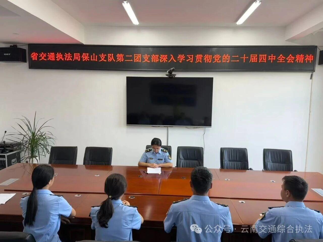 德宏支队制定分阶段学习计划,近期开展专题学习会5场次。组织团员青年在“百吨王”治理专项行动夜间巡查、卡点值守等任务中锻炼成长,各大队学用结合打造实践载体,推动全会精神在交通执法一线实践落地。