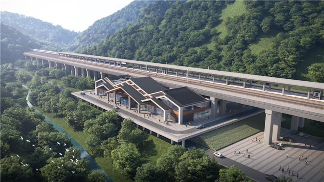 彝良北站位于云南省昭通市彝良县白岩村,站房规模5398.63平方米,采用混凝土框架结构,为线正下式站房。主体建筑包括地上两层和地下一层,地上一层设有候车厅、进站厅、出站厅及旅客服务区;地上二层为设备及办公用房,位于进站广厅两侧。