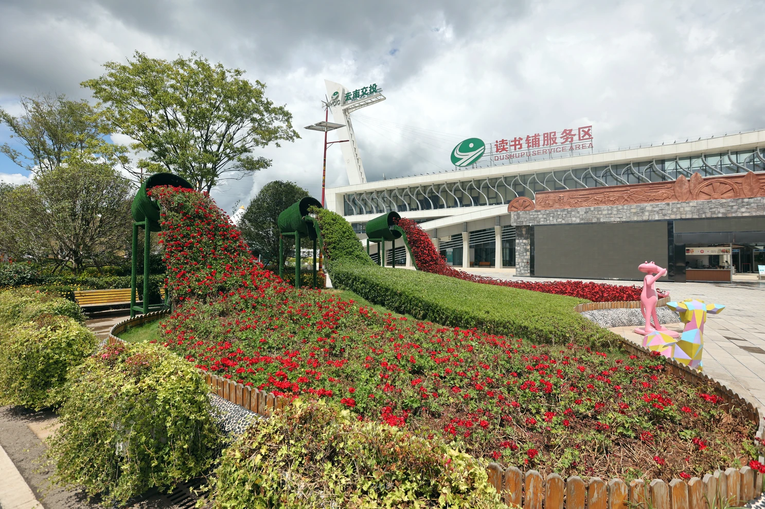 读书铺服务区位于G56杭瑞高速昆明至滇西方向主干道,距昆明主城区约20公里,是云南省规模最大、功能最完善、业态最丰富的景区式服务区。服务区先后获评“全国百佳示范服务区”“最美中国高速公路服务窗口”“全国高速公路旅游特色服务区”、5A级司机之家、“2024年度交通与旅游融合创新项目”“金牌服务区”等荣誉,并于2025年入选全国第一批旅游公路项目。