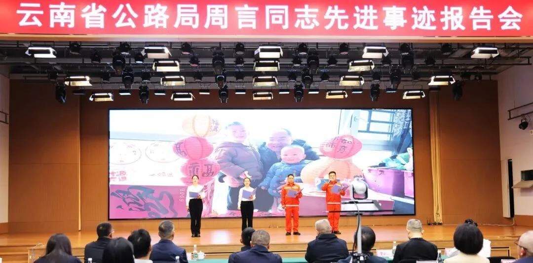 现场观看视频《榜样之“光”,照亮奋进之路》,对周言同志的亲属进行慰问。省文明办、省直机关工委、省交通运输厅相关部门领导,云岭建设集团、官渡区及驻地街道社区有关领导,以及新闻媒体受邀出席;省公路局领导及机关全体干部职工,局属昆区单位、曲靖公路局、国道建设指挥部、宣威公路分局相关负责人等近200人参加报告会。