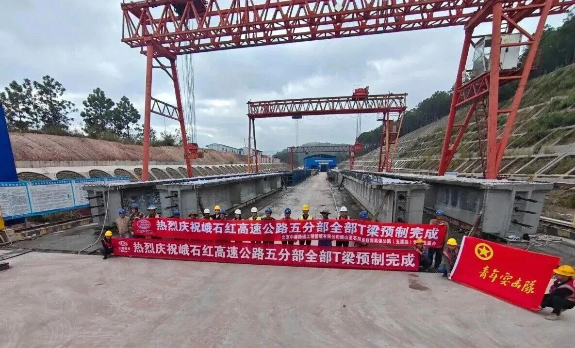 10月29日,随着最后一片30米T梁成功浇筑,峨石红高速(玉溪段)土建五分部承建的520片预制T梁全部完成,项目全线T梁预制任务圆满收官,为后续桥面系施工及主线贯通奠定了坚实基础。