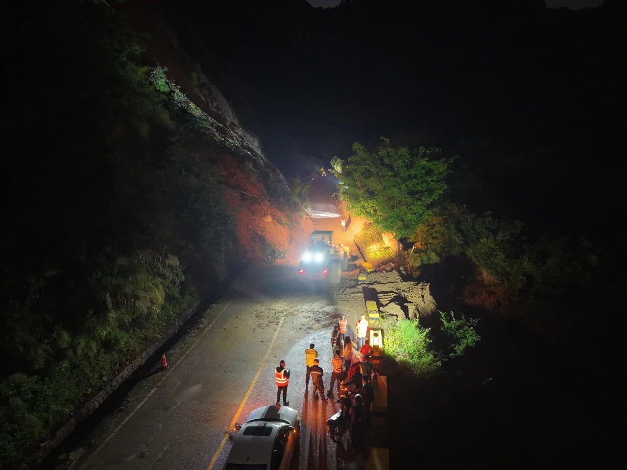 各公路分局站所人员及应急抢险队员第一时间驾驶装载机、挖掘机、运输车,携带油锯、铁锹等工具,火速奔赴各个受灾点。