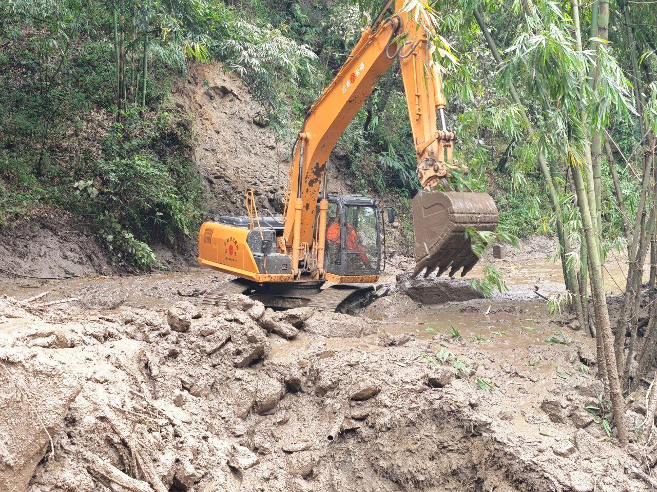 风雨中,他们是逆行的“橙色卫士”。在塌方点,挖掘机在湿滑的路面上精准作业,抢险队员浑身湿透,在保证自身安全的前提下坚守岗位,紧密监测着可能再次松动的山体。