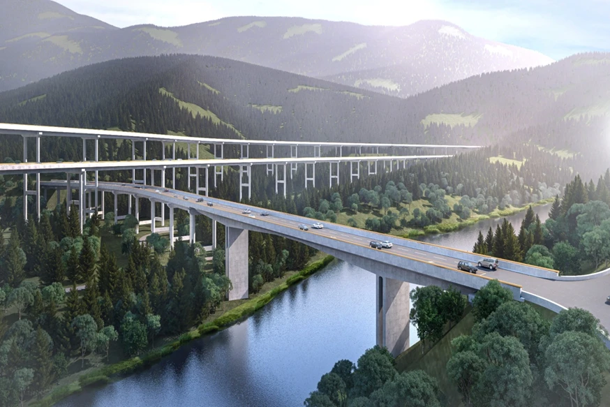 黄勐项目是穿越热带雨林的“生态隧道”。设计团队提出“低干扰、高融合”方案,采用高架桥跨越雨林沟谷,桥墩位置避让古树名木,并为亚洲象等动物预留迁徙通道。泸腾项目则如横跨怒江峡谷的“悬浮丝带”,以高达85%的桥隧比减少山体开挖,主桥采用单跨悬索结构,避免在江中设墩,呵护怒江生态。