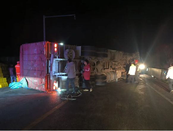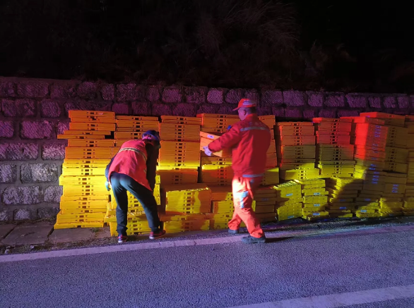 11月19日23时46分,夜色正浓,G213策磨线会泽段K3128+300路段突发紧急情况,一辆大货车行驶中不慎侧翻,车上货物散落路面,油箱破损,燃油泄漏,污染面积达150平方米。泄漏的柴油在夜间低温环境下极易结冰打滑,不仅造成道路双向交通中断,更给过往车辆和行人带来极大安全隐患,对周边道路环境构成威胁。