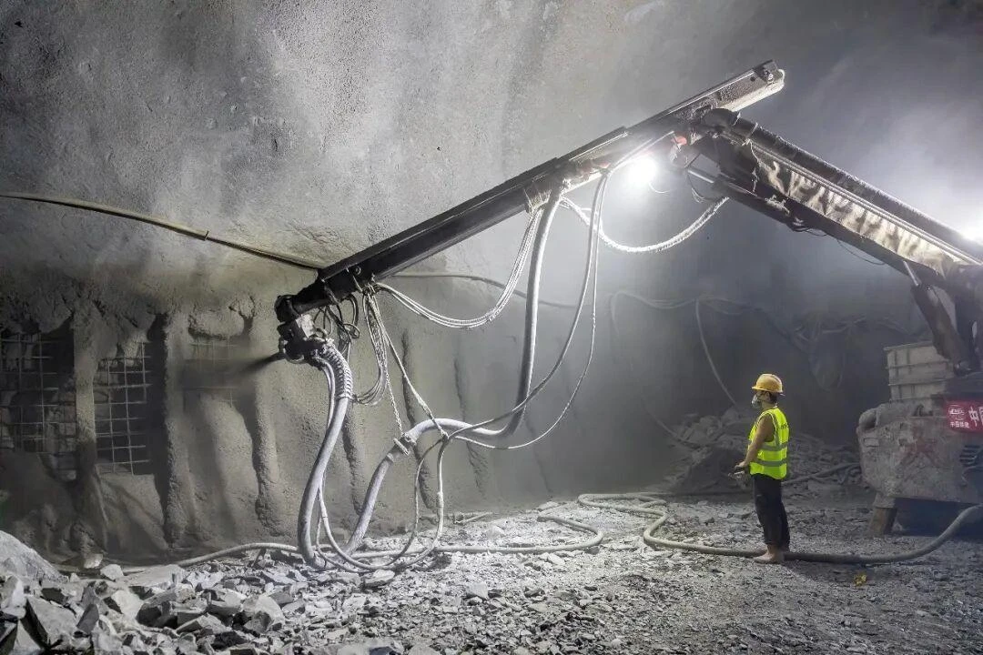 施工人员在彝良隧道内开展喷浆作业 陈畅 摄