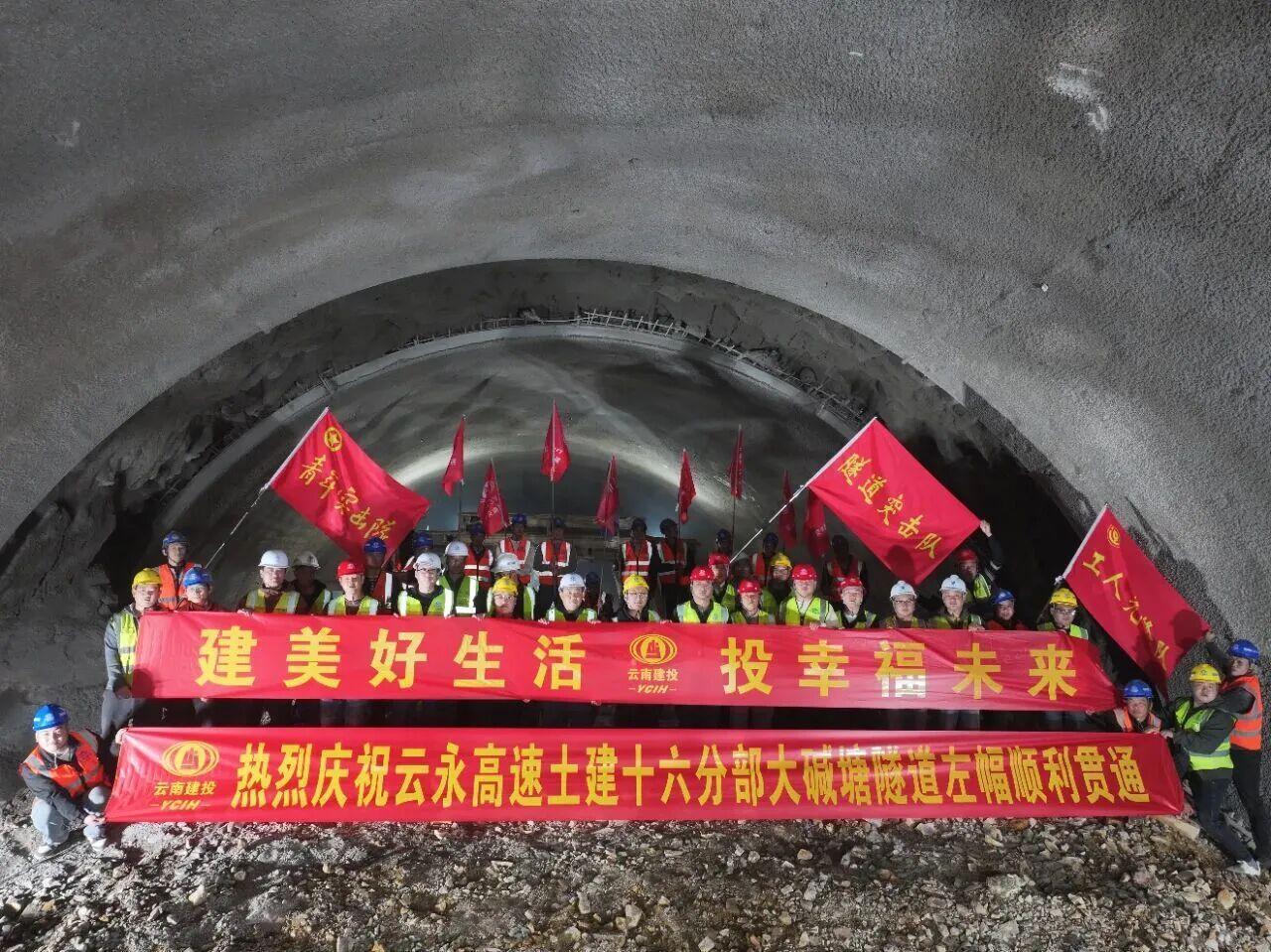 同日,云永高速大碱塘隧道左幅顺利贯通,是全线首座实现贯通的隧道。