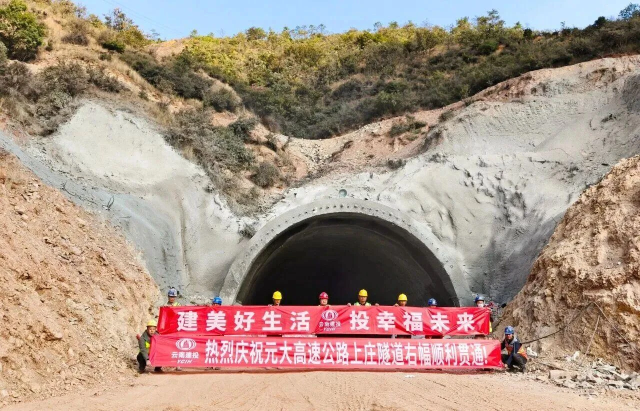 12月12日,元大高速公路项目土建4-1分部上庄隧道右幅顺利贯通,成为全线第一座实现双幅贯通的隧道。