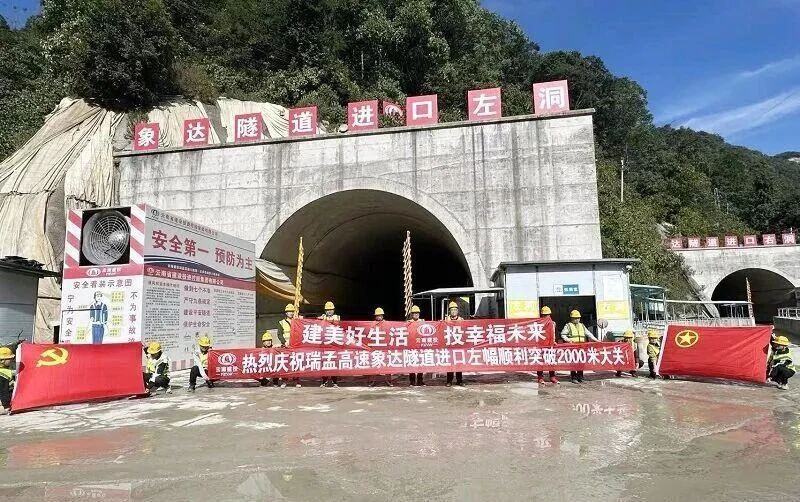 12月9日,瑞孟高速象达隧道进口段左幅掘进顺利突破2000米。