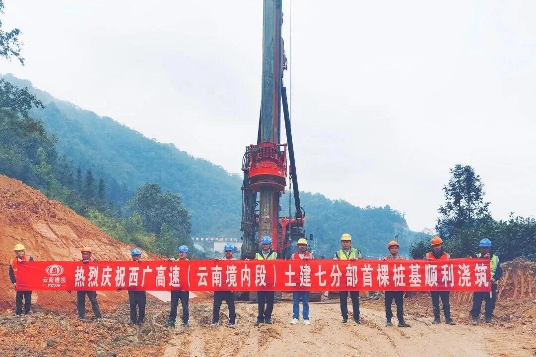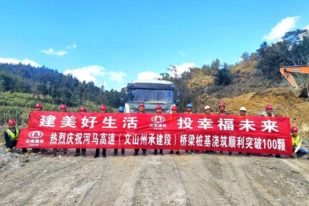 12月7日,河马高速公路(文山段)项目第100颗桥梁桩基顺利完成浇筑,提前7天达成百桩目标。