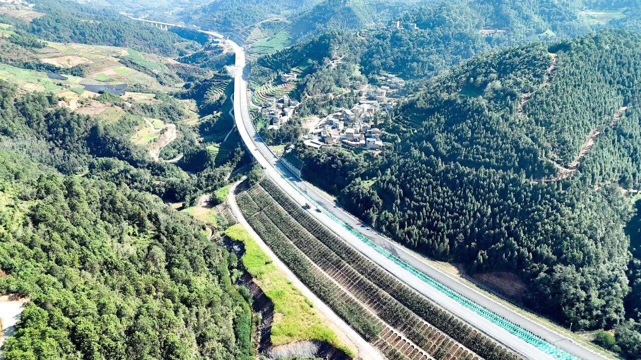 那兴高速位于文山州境内,路线全长57公里,共设桥梁70座,隧道16座,互通式立交5处,服务区1处,停车区1处,全线桥隧比62.41%。截至目前,项目路基工程完成99%、桥梁工程完成99%、隧道工程完成99%,绿化、房建、路面、机电、交安工程正同步推进。