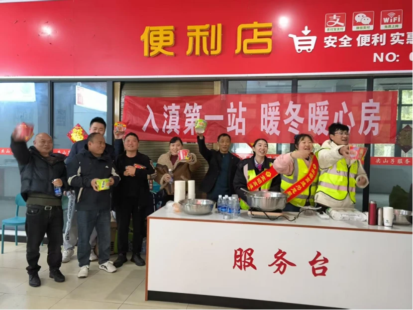 大年初二,宜昭高速公路运营管理中心尖山子服务区作为“入滇第一站”开展春节送温暖活动,工作人员早早准备,现场煮制汤圆、姜汤,免费发放给过往司乘人员,当天送出数百份。用一碗碗热食传递新春祝福,让奔波旅客感受“第一口温暖”,践行“情满旅途”服务理念。