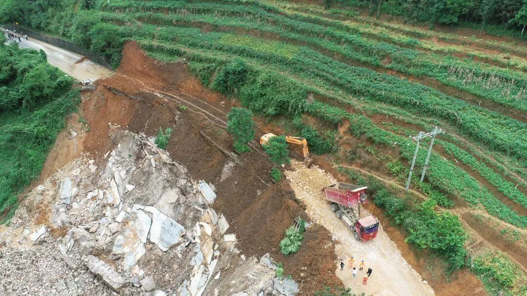 G246线在山间起伏,短短50公里,海拔从1000多米骤降到100多米。这么大的落差,让公路几乎贴着山崖走,加上年降水量超1000毫米,坍方、滑坡时有发生。