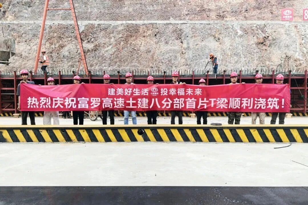 3月28日,富罗高速土建八分部首片T梁完成浇筑,桥梁工程进入上部结构施工阶段。