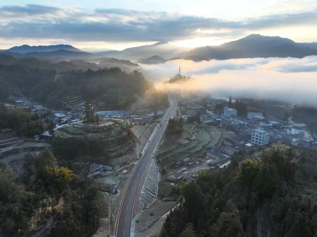 晨雾中的219国道黄勐项目 图片来源:“云南交通”微信公众号