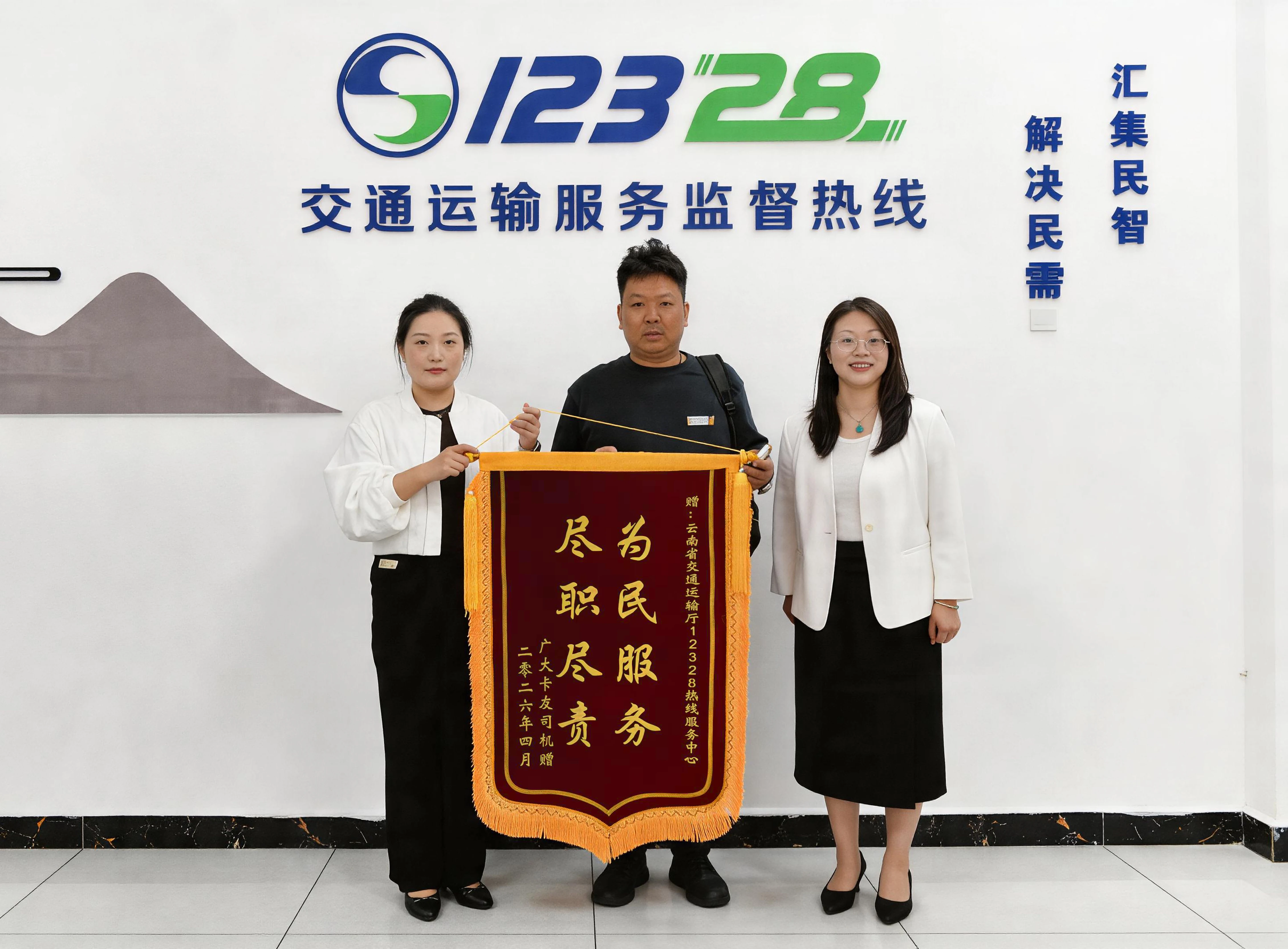 一条热线,连着民心。12328不仅是交通运输服务监督的“连心桥”,更是货车司机维权的“快车道”。云南省12328热线始终坚持“接诉即办、办就办好”的承诺,做到“件件有回应、事事有着落”。从证据缺失到全额到账,从“试试看”到送锦旗,每一通电话的背后,都是一份沉甸甸的信任与托付。让每一位奔波在云岭大地上的司机朋友感受到:身后有依靠,路上有温情。